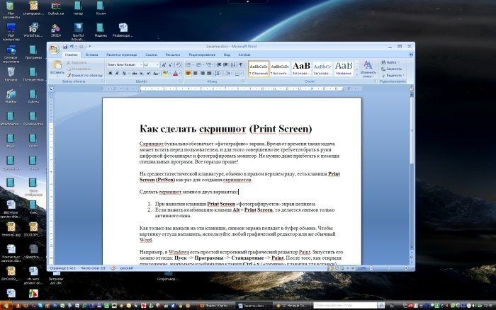 Скриншот буквально обозначает «фотографию» экрана. Время от времени такая задача может встать перед пользователем, и для этого совершенно не требуется брать в руки цифровой фотоаппарат и фотографировать монитор. Не нужно даже прибегать к помощи специальных программ. Все гораздо проще!